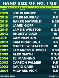 Why the NFL combine built a myth around QB hand size, a ... Every spring, the cycle of the QB Hand-Size Myth begins anew, with scouts dutifully reaching for their tape measures. But there's no evidence that bigger hands are better for NFL quarterbacks.