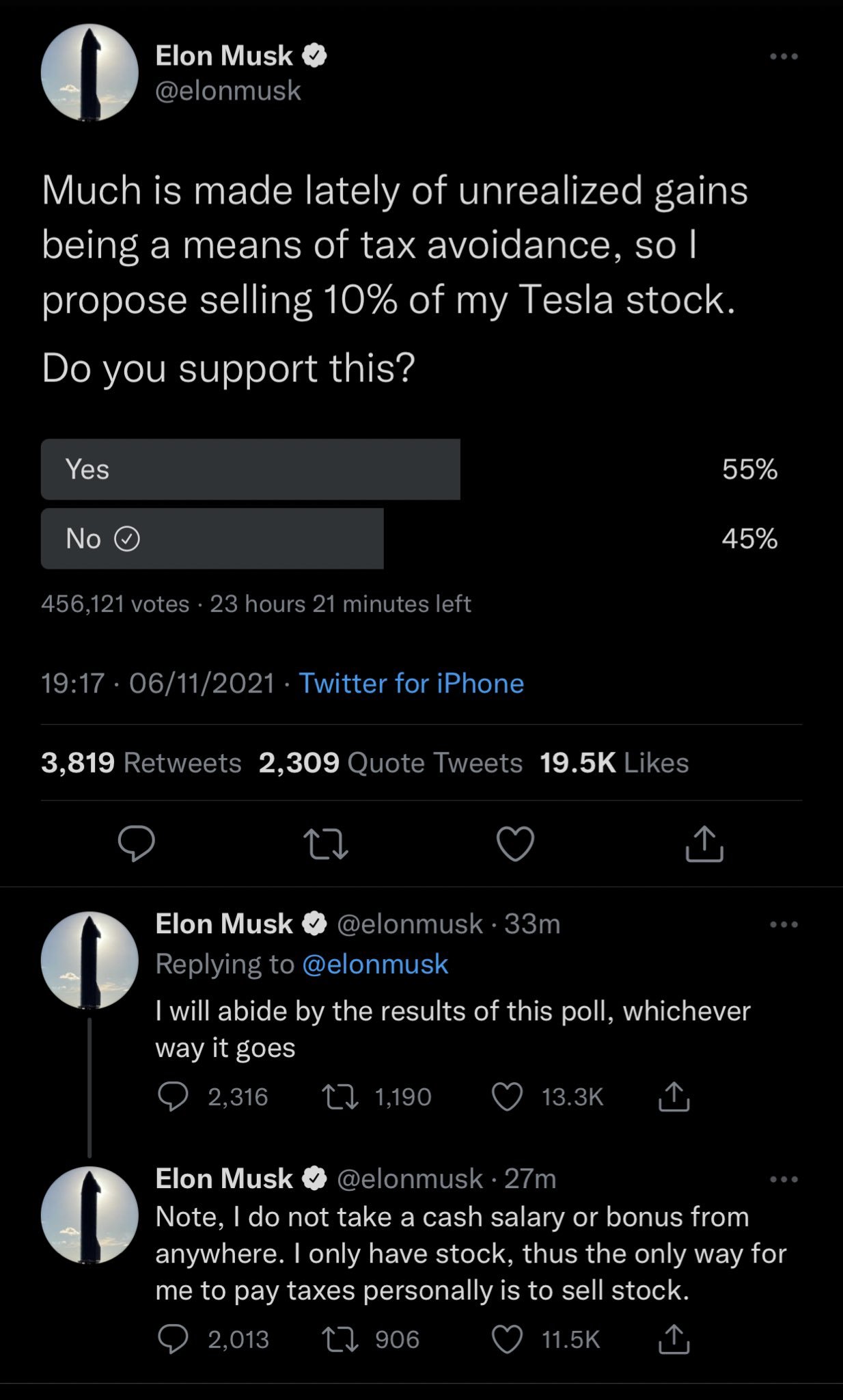 Elon Musk owes $11 billion in taxes after wrapping up his ... Dec 29, 2021 · Elon Musk and Sen. Elizabeth Warren in Twitter fight over taxes Analyst: Musk leveraging Tesla stock to buy Twitter is like swapping sushi for a hot dog Elon Musk set to purchase Twitter for $44 ...